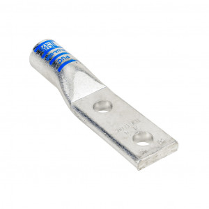 Penn-Union BLUA series compression lug, standard barrel, tin-plated aluminum, 35 kV, 1/2in mounting bolt, 2-hole, 300 MCM, blue markings, AL9CU.