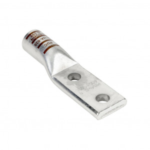 Penn-Union BLUA series compression lug, standard barrel, tin-plated aluminum, 35 kV, 1/2in mounting bolt, 2-hole, 250 MCM, red markings, AL9CU.