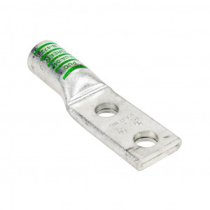 Penn-Union BLUA series compression lug, standard barrel, tin-plated aluminum, 35 kV, 5/8in mounting bolt, 2-hole, 400 MCM, green markings, AL9CU.