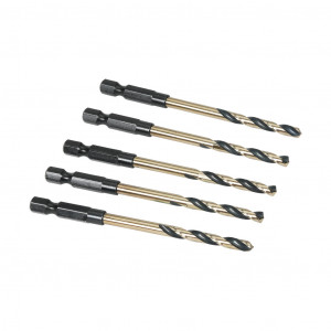 Precio no incluye IVAVIKING MECHANIC-LENGTH DRILL BIT, 3/16IN, SPLIT POINT, HIGH-SPEED STEEL (HSS), BLACK AND GOLD OXIDE FINISH, 1/4IN HEX SHANK, 3.8IN (97MM) OVERALL LENGTH. PACKAGE OF 5.
