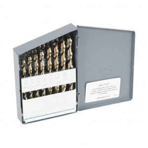 Set Includes | Includes (21) jobber-length drill bits (1/16in, 5/64in, 3/32in, 7/64in, 1/8in, 9/64in, 5/32in, 11/64in, 3/16in, 13/64in, 7/32in, 15/64in, 1/4in, 17/64in, 9/32in, 19/64in, 5/16in, 21/64in, 11/32in, 23/64in, 3/8in), durable metal case |