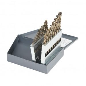 Precio no incluye IVAVIKING JOBBER-LENGTH DRILL BIT SET, 21 PIECES, 8% COBALT HIGH-SPEED STEEL (HSSE-CO8), ROUND SHANK, IMPERIAL, GOLD OXIDE FINISH, METAL INDEX CASE.