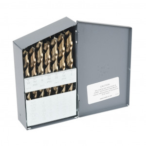 Set Includes | Includes (29) jobber-length drill bits (1/16in, 5/64in, 3/32in, 7/64in, 1/8in, 9/64in, 5/32in, 11/64in, 3/16in, 13/64in, 7/32in, 15/64in, 1/4in, 17/64in, 9/32in, 19/64in, 5/16in, 21/64in, 11/32in, 23/64in, 3/8in, 25/64in, 13/32in, 27/64in, 7/16in, 29/64in, 15/32in, 31/64in, 1/2in), durable metal case |