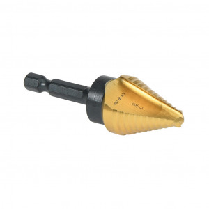 Precio no incluye IVAVIKING STEP DRILL BIT, 1/4IN TO 7/8IN, SIZE #7, 11 STEPS, SPLIT POINT, HIGH-SPEED STEEL (HSS), TITANIUM-NITRIDE (TIN) COATED FINISH, 1/4IN HEX SHANK, 2.3IN (58MM) OVERALL LENGTH.
