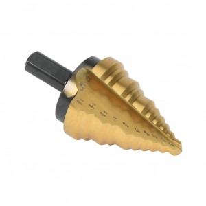Precio no incluye IVAVIKING STEP DRILL BIT, 7/8IN TO 1-3/8IN, SIZE #12, 5 STEPS, SPLIT POINT, HIGH-SPEED STEEL (HSS), TITANIUM-NITRIDE (TIN) COATED FINISH, 3/8IN DIAMETER 3-FLAT SHANK, 2.8IN (71MM) OVERALL LENGTH.
