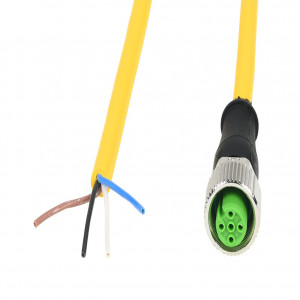 Precio no incluye IVAMURRELEKTRONIK CONNECTION CABLE, M12 AXIAL FEMALE A-CODED TO PIGTAIL, 4-POLE, 250 VAC/VDC, 4A, 22 AWG, TPE JACKET, YELLOW, UNSHIELDED, 9.8FT/3M CABLE LENGTH, IP65 IP66K IP67, SENSOR & SIGNAL.