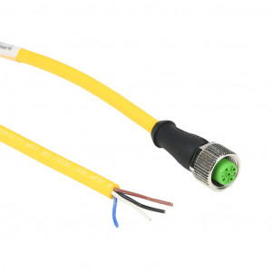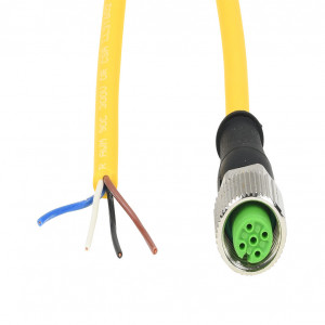 Precio no incluye IVAMURRELEKTRONIK CONNECTION CABLE, M12 AXIAL FEMALE A-CODED TO PIGTAIL, 4-POLE, 250 VAC/VDC, 4A, 22 AWG, TPE JACKET, YELLOW, UNSHIELDED, 16.4FT/5M CABLE LENGTH, IP65 IP66K IP67, SENSOR & SIGNAL.