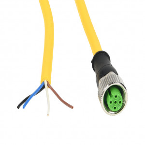 Precio no incluye IVAMURRELEKTRONIK CONNECTION CABLE, M12 AXIAL FEMALE A-CODED TO PIGTAIL, 4-POLE, 250 VAC/VDC, 4A, 22 AWG, TPE JACKET, YELLOW, UNSHIELDED, 32.8FT/10M CABLE LENGTH, IP65 IP66K IP67, SENSOR & SIGNAL.