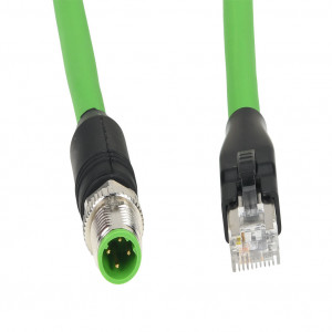 Precio no incluye IVAMURRELEKTRONIK CAT5E ETHERNET CONNECTION CABLE, M12 AXIAL MALE D-CODED TO RJ45 AXIAL MALE, 4-POLE, 60 VDC, 1.5A, 22 AWG, TPE JACKET, GREEN, OVERALL ALUMINUM FOIL AND TINNED COPPER BRAID, 6.5FT/2M CABLE LENGTH, IP67 (M12) IP20 (RJ45), DATA.