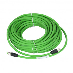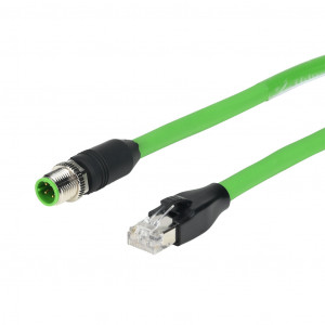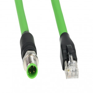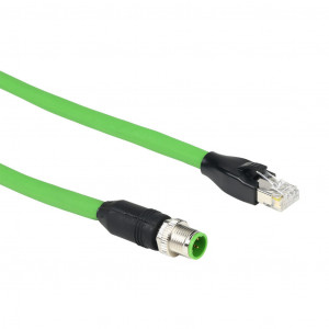 Precio no incluye IVAMURRELEKTRONIK CAT5E ETHERNET CONNECTION CABLE, M12 AXIAL MALE D-CODED TO RJ45 AXIAL MALE, 4-POLE, 60 VDC, 1.5A, 22 AWG, TPE JACKET, GREEN, OVERALL ALUMINUM FOIL AND TINNED COPPER BRAID, 49.2FT/15M CABLE LENGTH, IP67 (M12) IP20 (RJ45), DATA.