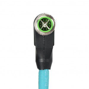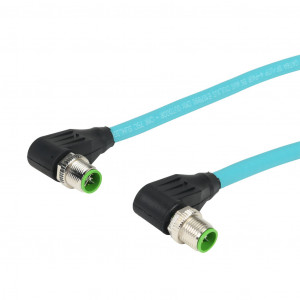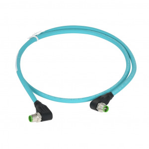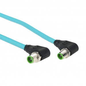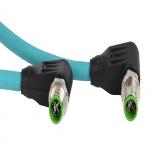 Precio no incluye IVAMURRELEKTRONIK CAT6A ETHERNET CONNECTION CABLE, M12 90-DEGREE MALE X-CODED TO M12 90-DEGREE MALE X-CODED, 8-POLE, 50 VAC/60 VDC, 0.5A, 26 AWG, TPE JACKET, TEAL, OVERALL ALUMINUM FOIL AND TINNED COPPER BRAID, 3.2FT/1M CABLE LENGTH, IP67, DATA.