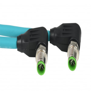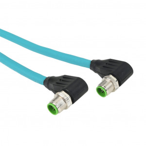 Precio no incluye IVAMURRELEKTRONIK CAT6A ETHERNET CONNECTION CABLE, M12 90-DEGREE MALE X-CODED TO M12 90-DEGREE MALE X-CODED, 8-POLE, 50 VAC/60 VDC, 0.5A, 26 AWG, TPE JACKET, TEAL, OVERALL ALUMINUM FOIL AND TINNED COPPER BRAID, 6.5FT/2M CABLE LENGTH, IP67, DATA.