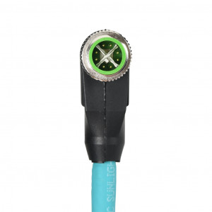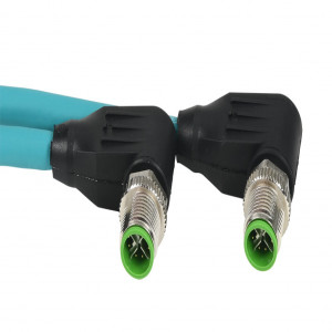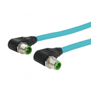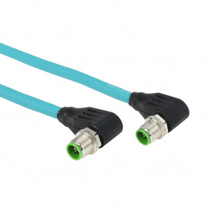Precio no incluye IVAMURRELEKTRONIK CAT6A ETHERNET CONNECTION CABLE, M12 90-DEGREE MALE X-CODED TO M12 90-DEGREE MALE X-CODED, 8-POLE, 50 VAC/60 VDC, 0.5A, 26 AWG, TPE JACKET, TEAL, OVERALL ALUMINUM FOIL AND TINNED COPPER BRAID, 9.8FT/3M CABLE LENGTH, IP67, DATA.