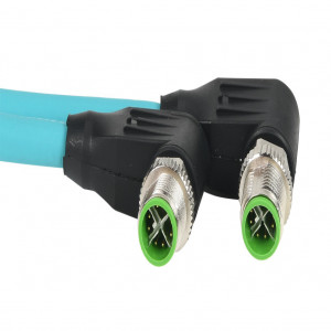 Precio no incluye IVAMURRELEKTRONIK CAT6A ETHERNET CONNECTION CABLE, M12 90-DEGREE MALE X-CODED TO M12 90-DEGREE MALE X-CODED, 8-POLE, 50 VAC/60 VDC, 0.5A, 26 AWG, TPE JACKET, TEAL, OVERALL ALUMINUM FOIL AND TINNED COPPER BRAID, 32.8FT/10M CABLE LENGTH, IP67, DATA.