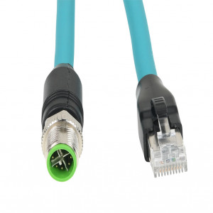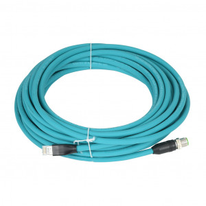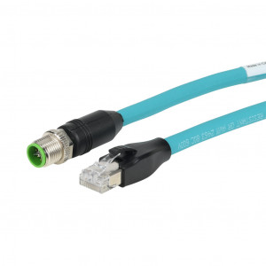 Precio no incluye IVAMURRELEKTRONIK CAT6A ETHERNET CONNECTION CABLE, M12 AXIAL MALE X-CODED TO RJ45 AXIAL MALE, 8-POLE, 60 VDC, 1.5A, 26 AWG, TPE JACKET, TEAL, OVERALL ALUMINUM FOIL AND TINNED COPPER BRAID, 32.8FT/10M CABLE LENGTH, IP67 (M12) IP20 (RJ45), DATA.
