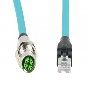 Precio no incluye IVAMURRELEKTRONIK CAT6A ETHERNET BULKHEAD CONNECTOR, M12 AXIAL FEMALE X-CODED 8-PIN TO RJ45 AXIAL MALE 8-PIN, SHIELDED, 26 AWG, 1.6FT/0.5M CABLE LENGTH, HDPE CONDUCTOR INSULATION MATERIAL, IP67 (M12) IP20 (RJ45).