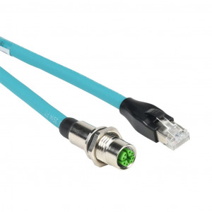 Precio no incluye IVAMURRELEKTRONIK CAT6A ETHERNET BULKHEAD CONNECTOR, M12 AXIAL FEMALE X-CODED 8-PIN TO RJ45 AXIAL MALE 8-PIN, SHIELDED, 26 AWG, 3.2FT/1M CABLE LENGTH, HDPE CONDUCTOR INSULATION MATERIAL, IP67 (M12) IP20 (RJ45).