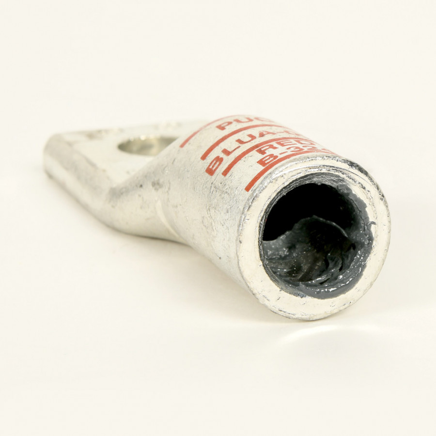 Precio no incluye IVAPenn-Union BLUA series compression lug, standard barrel, tin-plated aluminum, 35 kV, 1/2in mounting bolt, 1-hole, 250 MCM, red markings, AL9CU.