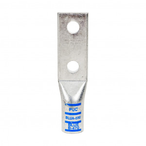Precio no incluye IVAPenn-Union BLUA series compression lug, standard barrel, tin-plated aluminum, 35 kV, 1/2in mounting bolt, 2-hole, 300 MCM, blue markings, AL9CU.