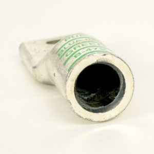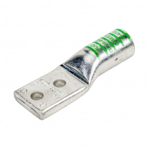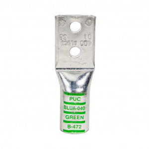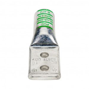 Precio no incluye IVAPenn-Union BLUA series compression lug, standard barrel, tin-plated aluminum, 35 kV, 3/8in mounting bolt, 2-hole, 400 MCM, green markings, AL9CU.