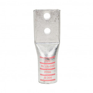 Precio no incluye IVAPenn-Union BLUA series compression lug, standard barrel, tin-plated aluminum, 35 kV, 3/8in mounting bolt, 2-hole, 500 MCM, pink markings, AL9CU.