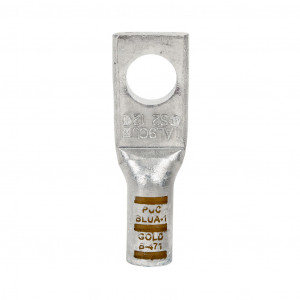 Precio no incluye IVAPenn-Union BLUA series compression lug, standard barrel, tin-plated aluminum, 35 kV, 1/2in mounting bolt, 1-hole, 1 AWG, gold markings, AL9CU.