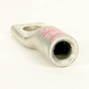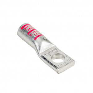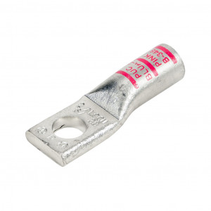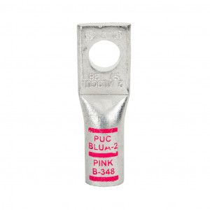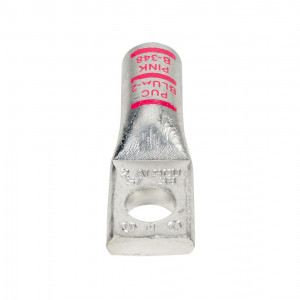 Precio no incluye IVAPenn-Union BLUA series compression lug, standard barrel, tin-plated aluminum, 35 kV, 3/8in mounting bolt, 1-hole, 2 AWG, pink markings, AL9CU.