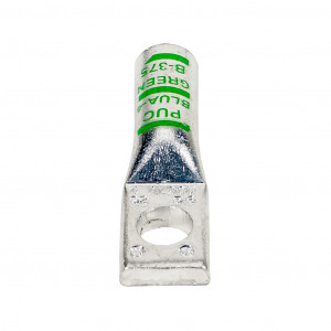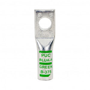 Precio no incluye IVAPenn-Union BLUA series compression lug, standard barrel, tin-plated aluminum, 35 kV, 5/16in mounting bolt, 1-hole, 4 AWG, green markings, AL9CU.
