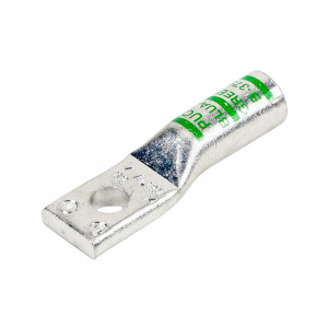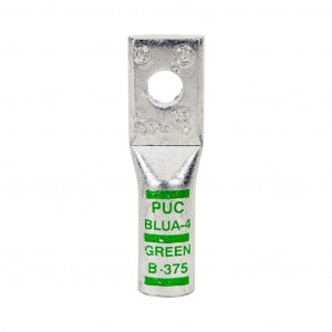 Precio no incluye IVAPenn-Union BLUA series compression lug, standard barrel, tin-plated aluminum, 35 kV, 1/4in mounting bolt, 1-hole, 4 AWG, green markings, AL9CU.