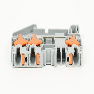 Precio no incluye IVAKONNECT-IT SCREWLESS FEEDTHROUGH TERMINAL BLOCK, SINGLE-LEVEL, 2 INPUTS TO 1 OUTPUT, ACCEPTS WIRE SIZE 28-12 AWG, GRAY, 20A, 600 VAC/VDC, 35MM DIN RAIL MOUNT. PACKAGE OF 50.