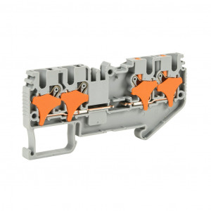Precio no incluye IVAKONNECT-IT SCREWLESS COMMON POINT FEEDTHROUGH TERMINAL BLOCK, SINGLE-LEVEL, 2 INPUTS TO 2 OUTPUTS WITH NO CONNECTION, ACCEPTS WIRE SIZE 28-12 AWG, GRAY, 20A, 300 VAC/VDC, 35MM DIN RAIL MOUNT. PACKAGE OF 50.