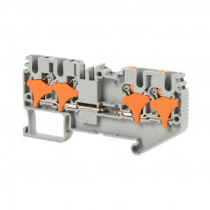 Precio no incluye IVAKONNECT-IT SCREWLESS COMMON POINT FEEDTHROUGH TERMINAL BLOCK, SINGLE-LEVEL, 2 INPUTS TO 2 OUTPUTS WITH NO CONNECTION, ACCEPTS WIRE SIZE 28-12 AWG, GRAY, 20A, 300 VAC/VDC, 35MM DIN RAIL MOUNT. PACKAGE OF 25.