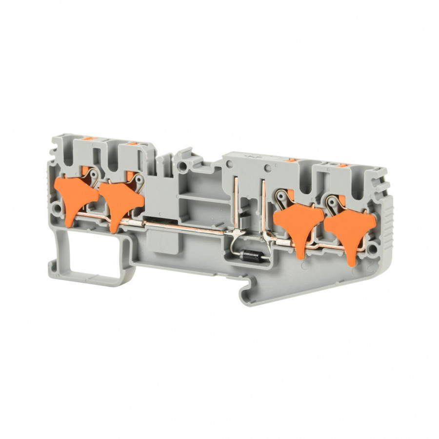 Precio no incluye IVAKONNECT-IT SCREWLESS COMMON POINT FEEDTHROUGH TERMINAL BLOCK, SINGLE-LEVEL, 2 INPUTS TO 2 OUTPUTS BRIDGED WITH DIODE, CATHODE ON OUTPUT, ACCEPTS WIRE SIZE 28-12 AWG, GRAY, 1A, 300 VAC/VDC, 35MM DIN RAIL MOUNT. PACKAGE OF 25.