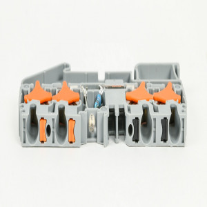 Precio no incluye IVAKONNECT-IT SCREWLESS COMMON POINT FEEDTHROUGH TERMINAL BLOCK, SINGLE-LEVEL, 2 INPUTS TO 2 OUTPUTS BRIDGED WITH POWER INDICATOR, ACCEPTS WIRE SIZE 28-12 AWG, GRAY, 20A, 220 VAC/VDC, LED INDICATOR(S), 35MM DIN RAIL MOUNT. PACKAGE OF 25.