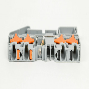 Precio no incluye IVAKONNECT-IT SCREWLESS COMMON POINT FEEDTHROUGH TERMINAL BLOCK, SINGLE-LEVEL, 2 INPUTS TO 2 OUTPUTS BRIDGED WITH POWER INDICATOR, ACCEPTS WIRE SIZE 28-12 AWG, GRAY, 20A, 48 VAC/VDC, LED INDICATOR(S), 35MM DIN RAIL MOUNT. PACKAGE OF 50.