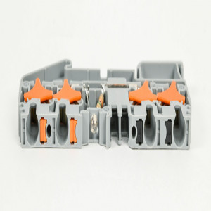 Precio no incluye IVAKONNECT-IT SCREWLESS COMMON POINT FEEDTHROUGH TERMINAL BLOCK, SINGLE-LEVEL, 2 INPUTS TO 2 OUTPUTS BRIDGED WITH POWER INDICATOR, ACCEPTS WIRE SIZE 28-12 AWG, GRAY, 20A, 48 VAC/VDC, LED INDICATOR(S), 35MM DIN RAIL MOUNT. PACKAGE OF 25.