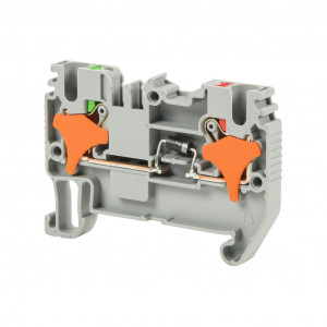 Precio no incluye IVAKONNECT-IT SCREWLESS FEEDTHROUGH TERMINAL BLOCK, SINGLE-LEVEL WITH DIODE, CATHODE ON INPUT, ACCEPTS WIRE SIZE 28-12 AWG, GRAY, 1A, 600 VAC/VDC, 35MM DIN RAIL MOUNT. PACKAGE OF 50.