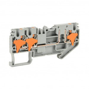 Precio no incluye IVAKONNECT-IT SCREWLESS COMMON POINT FEEDTHROUGH TERMINAL BLOCK, SINGLE-LEVEL, 1 INPUT TO 2 OUTPUTS BRIDGED, ACCEPTS WIRE SIZE 28-12 AWG, GRAY, 20A, 300 VAC/VDC, 35MM DIN RAIL MOUNT. PACKAGE OF 25.