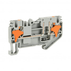 Precio no incluye IVAKONNECT-IT SCREWLESS FEEDTHROUGH TERMINAL BLOCK, SINGLE-LEVEL, 1 INPUT TO 1 OUTPUT WITH DIODE, CATHODE ON INPUT, ACCEPTS WIRE SIZE 28-12 AWG, GRAY, 1A, 300 VAC/VDC, 35MM DIN RAIL MOUNT. PACKAGE OF 50.