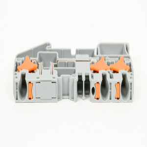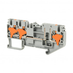 Precio no incluye IVAKONNECT-IT SCREWLESS COMMON POINT FEEDTHROUGH TERMINAL BLOCK, SINGLE-LEVEL, 1 INPUT TO 2 OUTPUTS WITH DIODE, CATHODE ON INPUT, ACCEPTS WIRE SIZE 28-12 AWG, GRAY, 1A, 300 VAC/VDC, 35MM DIN RAIL MOUNT. PACKAGE OF 50.