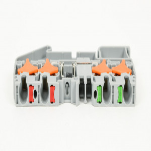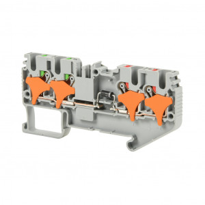 Precio no incluye IVAKONNECT-IT SCREWLESS COMMON POINT FEEDTHROUGH TERMINAL BLOCK, SINGLE-LEVEL, 2 INPUTS TO 2 OUTPUTS BRIDGED WITH DIODE, CATHODE ON INPUT, ACCEPTS WIRE SIZE 28-12 AWG, GRAY, 1A, 600 VAC/VDC, 35MM DIN RAIL MOUNT. PACKAGE OF 25.