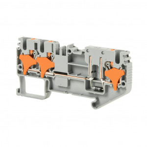 Precio no incluye IVAKONNECT-IT SCREWLESS COMMON POINT FEEDTHROUGH TERMINAL BLOCK, SINGLE-LEVEL, 1 INPUT TO 2 OUTPUTS WITH DIODE, CATHODE ON OUTPUT, ACCEPTS WIRE SIZE 28-12 AWG, GRAY, 1A, 300 VAC/VDC, 35MM DIN RAIL MOUNT. PACKAGE OF 25.
