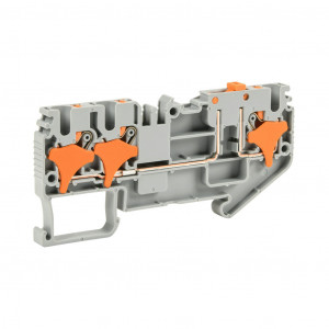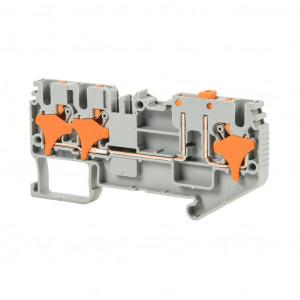 Precio no incluye IVAKONNECT-IT SCREWLESS COMMON POINT FEEDTHROUGH TERMINAL BLOCK, SINGLE-LEVEL, 1 INPUT TO 2 OUTPUTS BRIDGED WITH DISCONNECT, ACCEPTS WIRE SIZE 28-12 AWG, GRAY, 20A, 300 VAC/VDC, 35MM DIN RAIL MOUNT. PACKAGE OF 25.