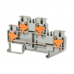Precio no incluye IVAKONNECT-IT SCREWLESS FEEDTHROUGH TERMINAL BLOCK, DOUBLE-LEVEL, ACCEPTS WIRE SIZE 28-12 AWG, GRAY, 20A, 300 VAC/VDC, 35MM DIN RAIL MOUNT. PACKAGE OF 50.