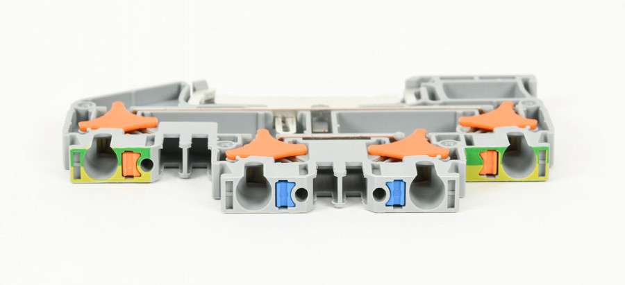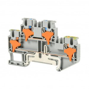 Precio no incluye IVAKONNECT-IT SCREWLESS FEEDTHROUGH TERMINAL BLOCK, DOUBLE-LEVEL WITH GROUND AND MARKED FOR NEUTRAL AND GROUND, ACCEPTS WIRE SIZE 28-12 AWG, GRAY, 20A, 300 VAC/VDC, 35MM DIN RAIL MOUNT. PACKAGE OF 50.