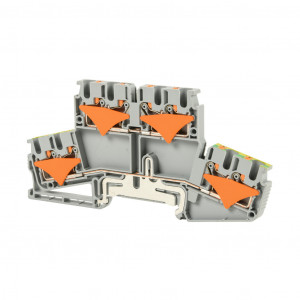 Precio no incluye IVAKONNECT-IT SCREWLESS FEEDTHROUGH TERMINAL BLOCK, DOUBLE-LEVEL, 4 INPUTS TO 4 OUTPUTS WITH GROUND, ACCEPTS WIRE SIZE 28-12 AWG, GRAY, 20A, 300 VAC/VDC, 35MM DIN RAIL MOUNT. PACKAGE OF 25.