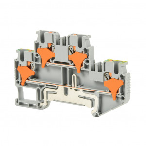 Precio no incluye IVAKONNECT-IT SCREWLESS FEEDTHROUGH TERMINAL BLOCK, DOUBLE-LEVEL WITH GROUND AND MARKED FOR PHASE AND GROUND, ACCEPTS WIRE SIZE 28-12 AWG, GRAY, 20A, 300 VAC/VDC, 35MM DIN RAIL MOUNT. PACKAGE OF 50.