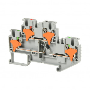 Precio no incluye IVAKONNECT-IT SCREWLESS FEEDTHROUGH TERMINAL BLOCK, DOUBLE-LEVEL, 2 DIODES CONNECTED BETWEEN LEVELS, LOWER LEVEL NO CONNECTION, CATHODES ON TOP LEVEL, ACCEPTS WIRE SIZE 28-12 AWG, GRAY, 1A, 300 VAC/VDC, 35MM DIN RAIL MOUNT. PACKAGE OF 25.