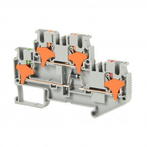 Precio no incluye IVAKONNECT-IT SCREWLESS FEEDTHROUGH TERMINAL BLOCK, DOUBLE-LEVEL, 1 DIODE CONNECTED LOWER LEVEL, CATHODE ON INPUT, ACCEPTS WIRE SIZE 28-12 AWG, GRAY, 1A, 300 VAC/VDC, 35MM DIN RAIL MOUNT. PACKAGE OF 25.