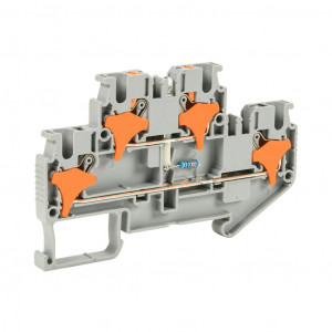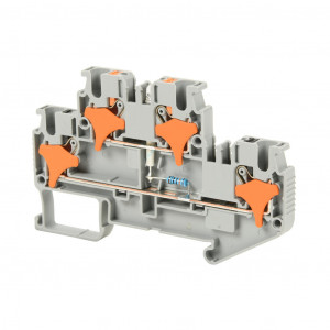Precio no incluye IVAKONNECT-IT SCREWLESS FEEDTHROUGH TERMINAL BLOCK, DOUBLE-LEVEL, CONNECTED BETWEEN LEVELS WITH POWER INDICATOR, ACCEPTS WIRE SIZE 28-12 AWG, GRAY, 20A, 110 VAC/VDC, LED INDICATOR(S), 35MM DIN RAIL MOUNT. PACKAGE OF 25.